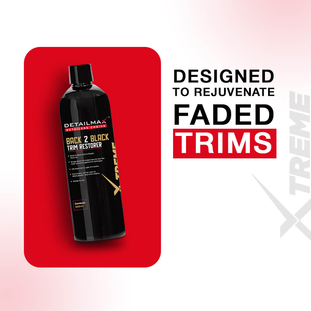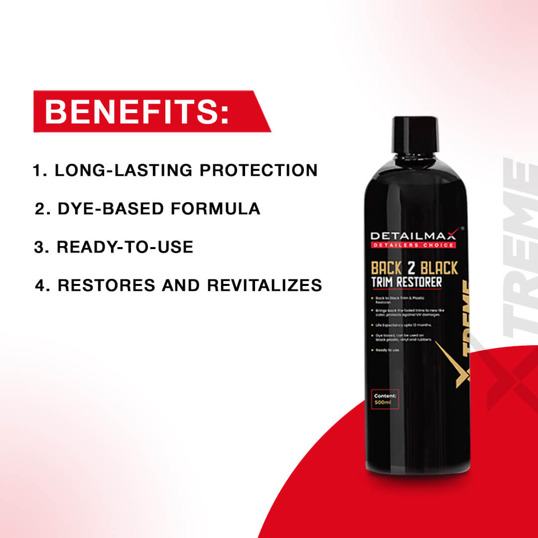 Transform and protect the vehicle’s exterior with DETAILMAX® Back 2 Black Trim Restorer – a professional-grade solution that delivers a showroom-quality finish and enduring resilience.