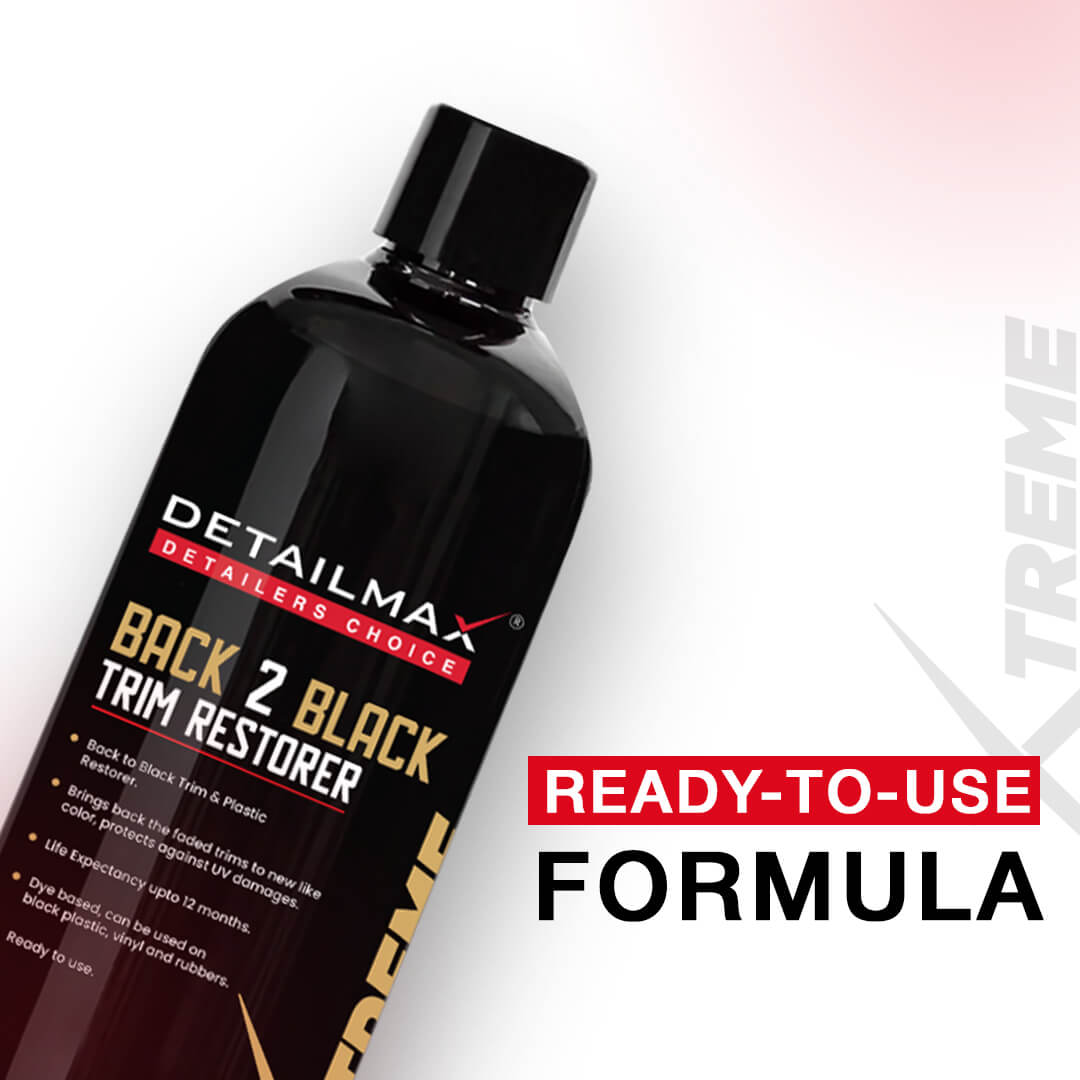 Revitalize the car’s appearance with DETAILMAX® Back 2 Black Trim Restorer, the ultimate solution for restoring and protecting the car’s trim and plastic surfaces. Designed to rejuvenate faded trims, this high-performance plastic restorer brings back a like-new, deep black finish while offering lasting protection against UV damage.